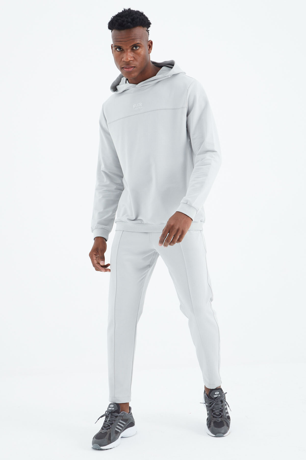 Eşofman ceketinin kapüşonlu tasarımı, şıklığı ve fonksiyonelliği bir araya getiriyor. Kapüşon, hafif yağışlı havalarda sizi korurken, sportif bir görünüm sunuyor. Her an kullanıma hazır olan bu özellik, Air Jones'un eşofman takımını çok yönlü kılıyor. Jogger pantolonun standart kalıp tasarımı, modern ve rahat bir kesim sunarak her vücut tipine uyum sağlıyor. İnce detaylar ve özel dikişlerle tamamlanan bu pantolon, tarzınızı yansıtmanız için ideal bir seçenek sunuyor. Dört mevsim kullanıma uygunluğu ile her an giyilebilir.