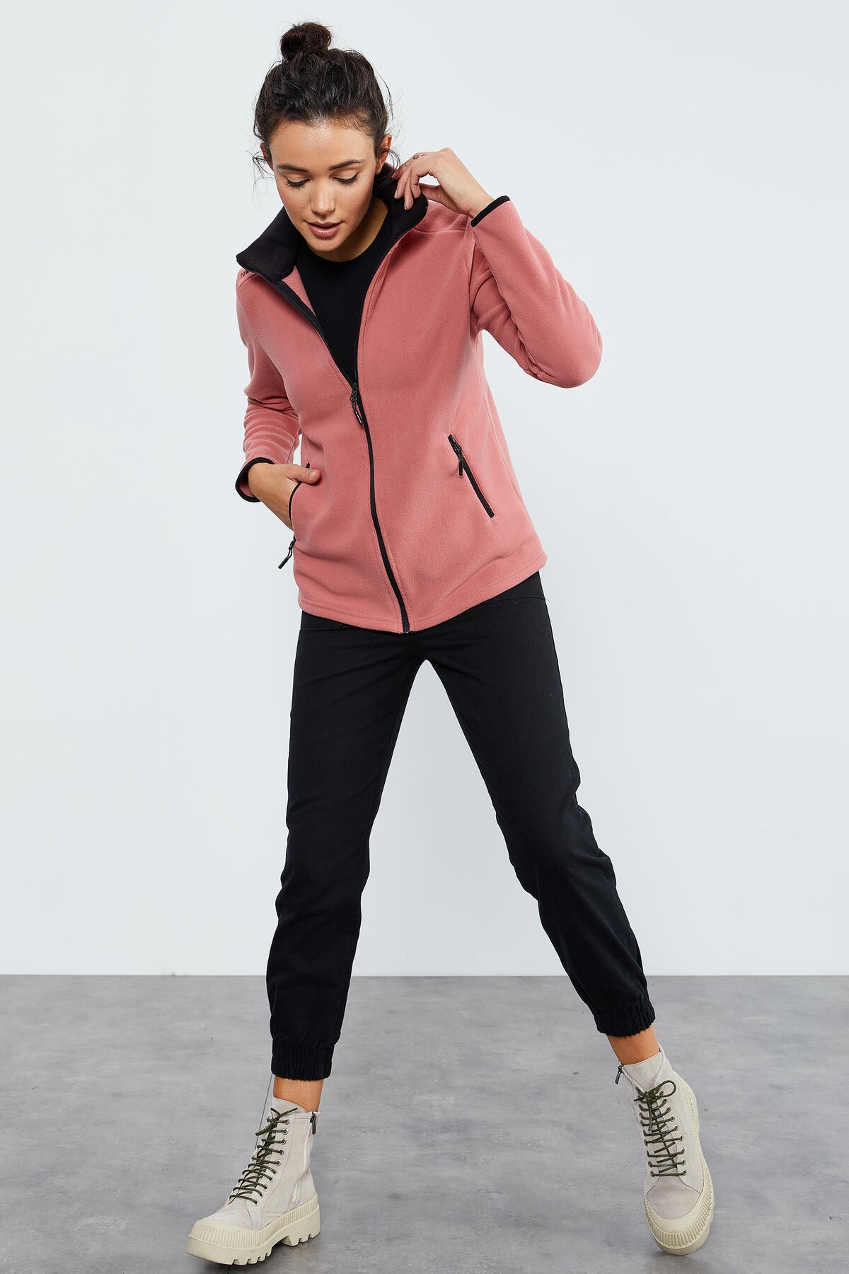 Yaban Gülü Dik Yaka Fermuarlı Rahat Form Kadın Polar Sweatshirt kombin yapmanızda kolaylık sağlayacak bu ürünü alt giyim ürünleriyle şık bir kombin haline getirebilirsiniz. Jean pantolanlarla kombinlendiği zaman stilinize yenilikler katar çantayla birlikte tamamladığınızda gündelik yaşantınız da dikkatleri üzerinize çekin. Ayakkabı seçimlerinde spor ayakkabıları tercih ederseniz sportif bir tarza imza atmış olursunuz. Size birden fazla stil seçeneği sunan bu ürünü kaçırmayın.