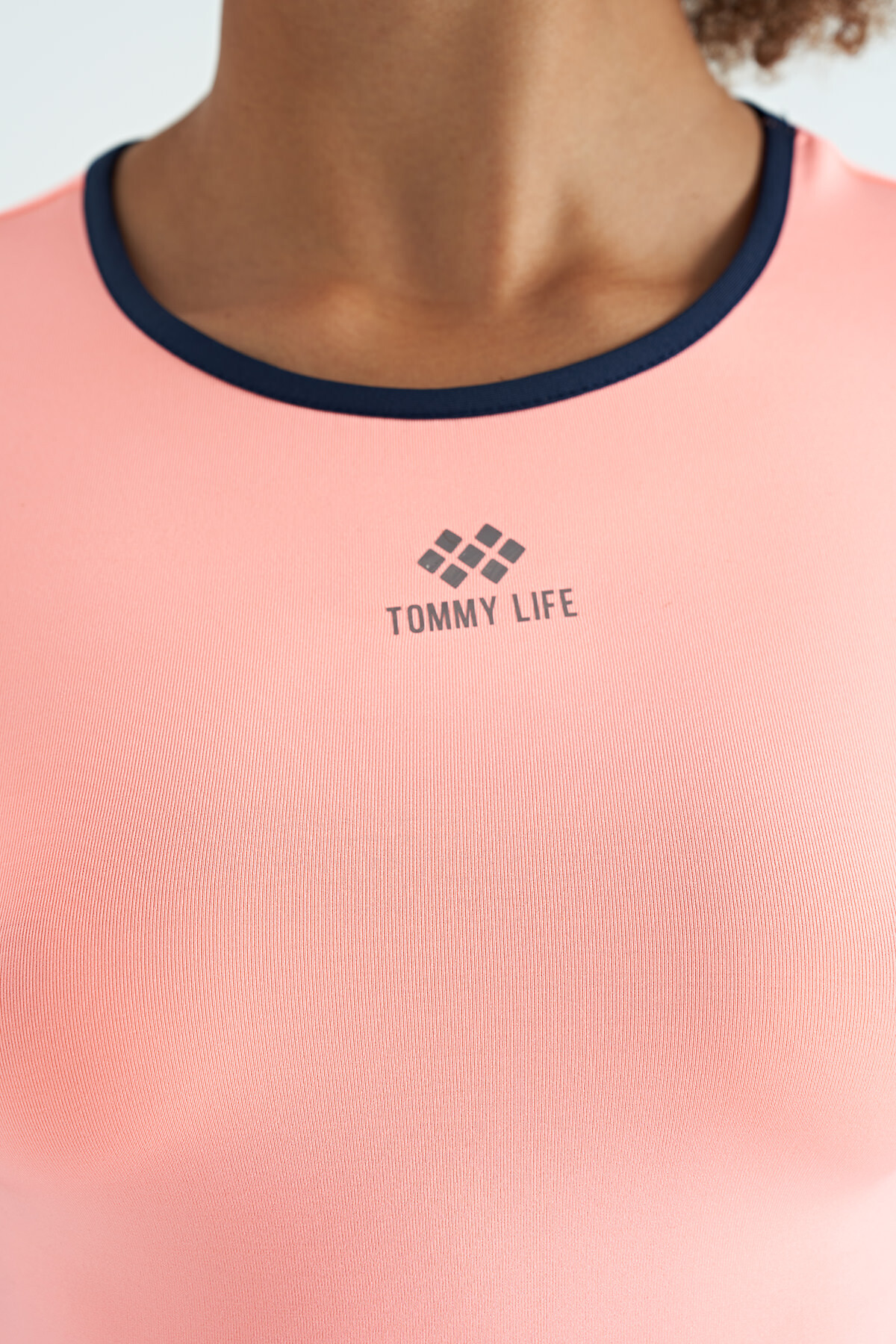 Yavruagzı Bel Bağlama Detaylı O Yaka Standart Kalıp Dalgıç Kumaş Kadın Crop T-Shirt - 97266