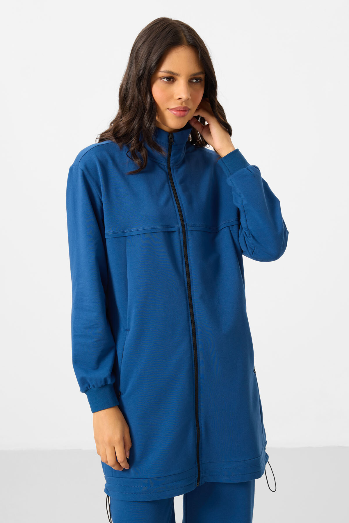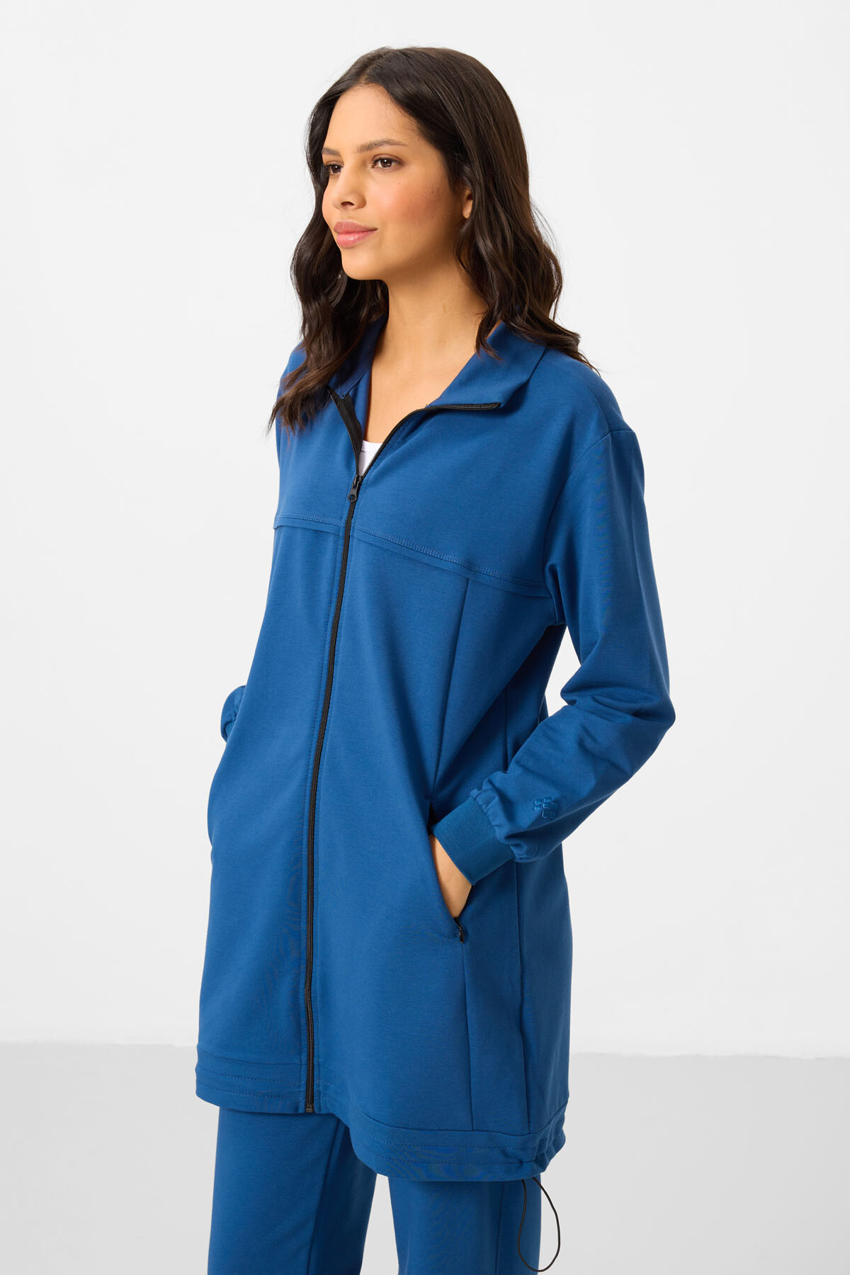Parlement mavisinin zarif ve güçlü tonuyla tasarlanan bu eşofman takımı, günlük kombinlerine modern bir duruş kazandırıyor. Minimal detayları ve konforlu kalıbı sayesinde hem spor hem şehir stilinde özgürce kullanılabilir. Hem şık hem rahat olmayı seven kadınlar için ideal bir seçim!