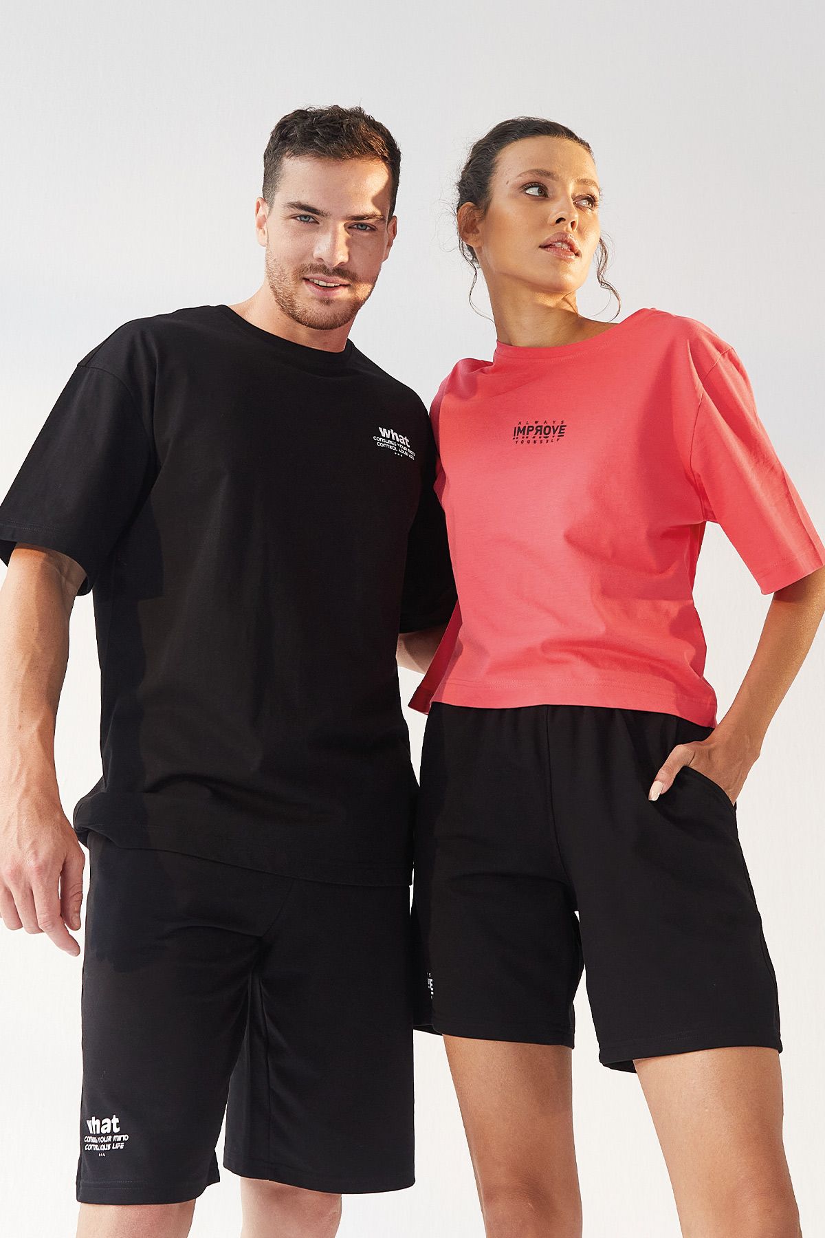Ürün Kodu : 95292_420 - 85156_91Ürün Adı : Rose / Siyah - Siyah Küçük Yazı Baskılı O Yaka Oversize Bermuda Şort Takım Sevgili KombiniModelin Ölçüleri : Erkek - Boy : 1,85 Cm / Göğüs : 98 Cm / Bel : 80 Cm - M/38 / Kadın - Boy : 1.79 Cm / Göğüs : 86 Cm / Bel : 62 Cm / Kalça : 90 Cm - S/36Numune Bedeni : Erkek - M/38 Kadın - S/36Kumaş Bilgisi : %80 Pamuk %15 Polyester %5 ElastanMevsimi : YazÜrün Kalıp Bilgisi : OversizeÜrün Ölçüleri : Erkek - Alt: Yan Boy Kemer Dahil S Beden: 54 Cm / Bel: 35 Cm / Basen: 53,5 Cm - Üst: Omuzdan Boy: 72,5 Cm / Göğüs: 57 Cm / Kadın - Alt: Yan Boy Kemer Dahil S Beden: 43,5 Cm / Bel: 34 Cm / Basen: 52 CmPaket/Ürün İçeriği : Şort Takım