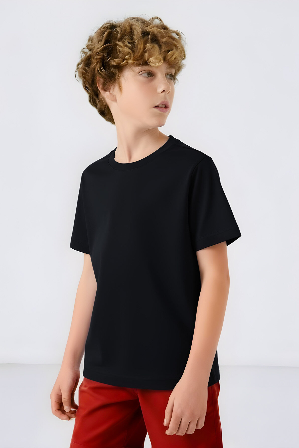 Standart Fit Basic O Yaka 3'lü Paket Lacivert-Bej-Koyu Mavi Unisex Çocuk T-Shirt - 11328