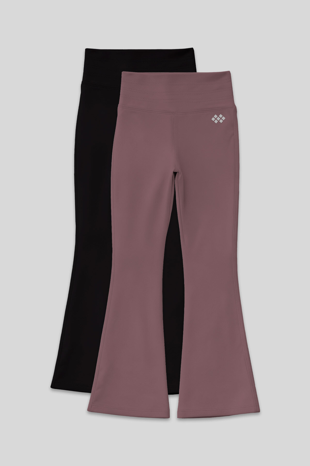 Esnek Performans İspanyol Paça 2'li Paket Siyah-Gül Kurusu Kız Çocuk Tayt - 75193