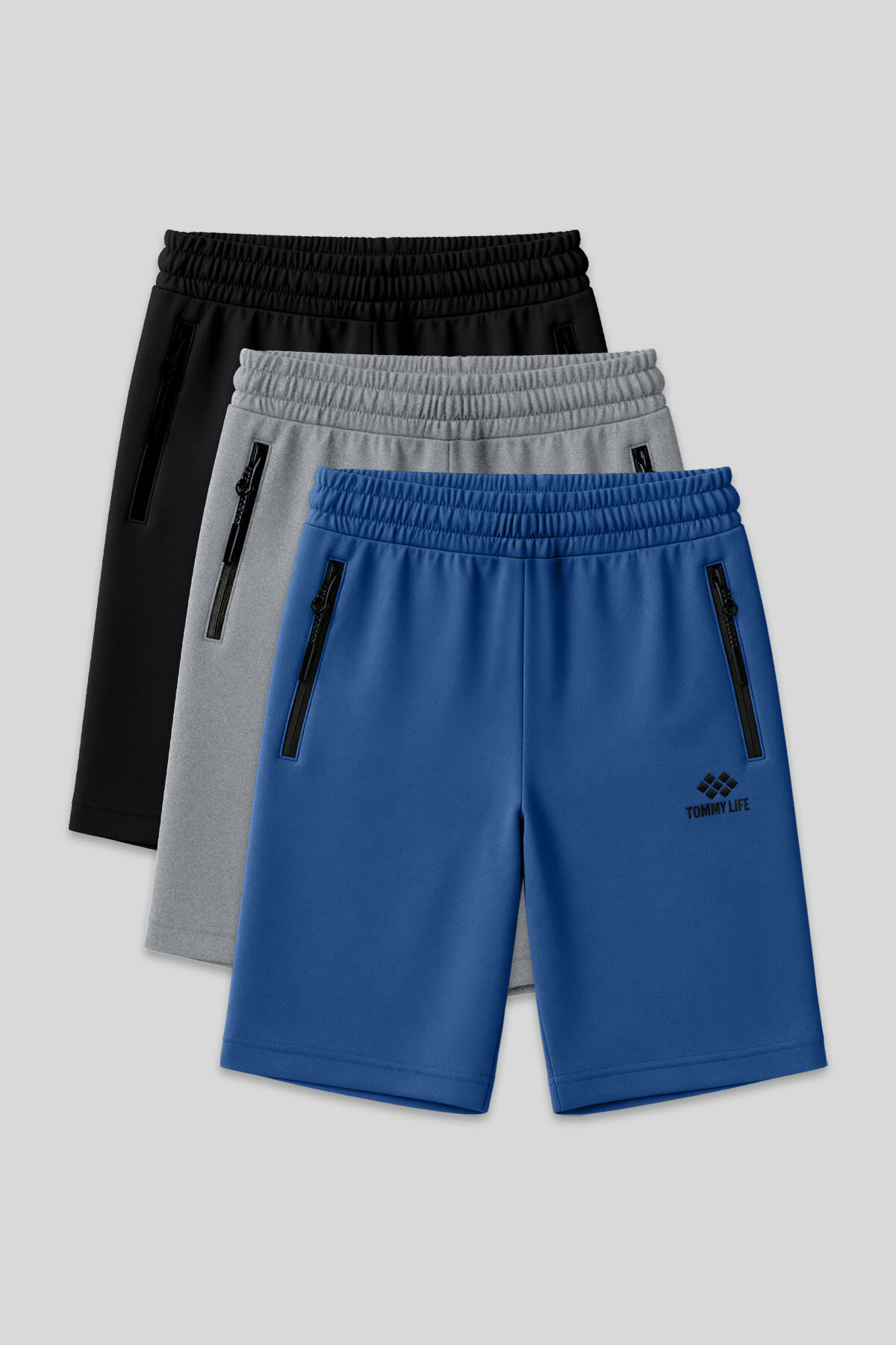 Standart Kalıp 3'lü Paket Siyah-Gri Melanj-Parlament Erkek Şort - 81136
