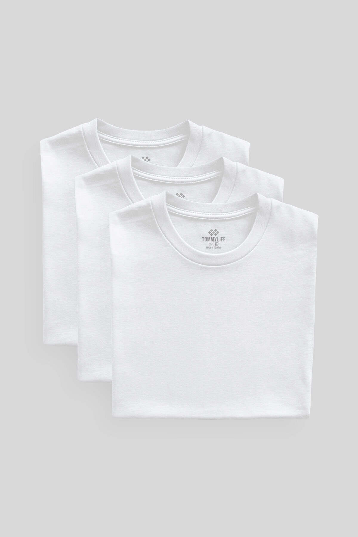 Standart Fit Basic O Yaka 3'lü Paket Beyaz Erkek T-Shirt 87911