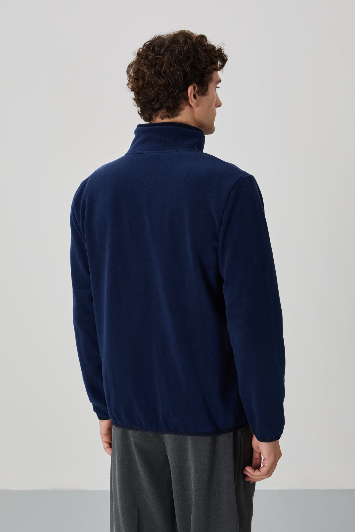 Standart Kalıp Dik Yaka 2'li Paket İndigo-Mint Yeşili Erkek Polar Sweatshirt - 87992