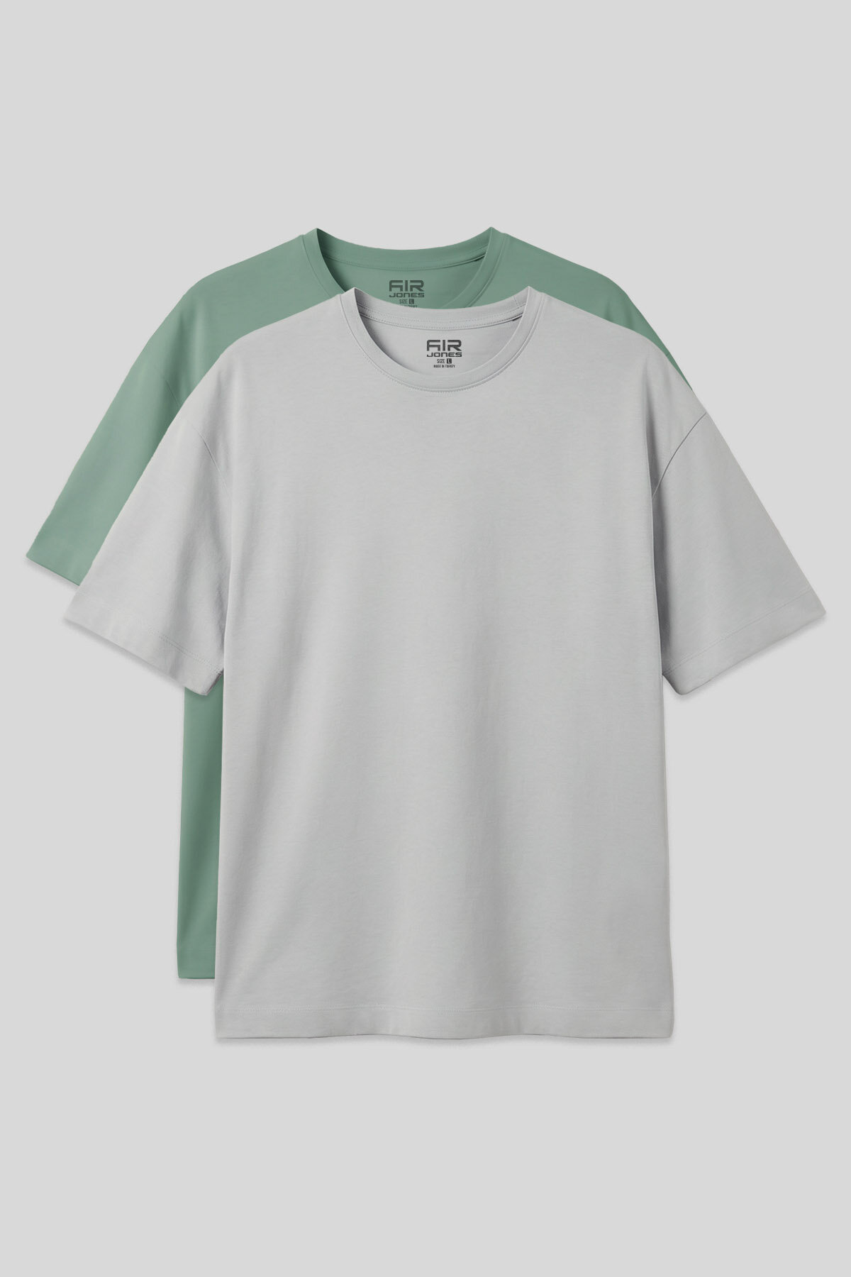 Oversize Fit Basic 2'li Paket Taş-Açık Yeşil Erkek T-Shirt - 88353