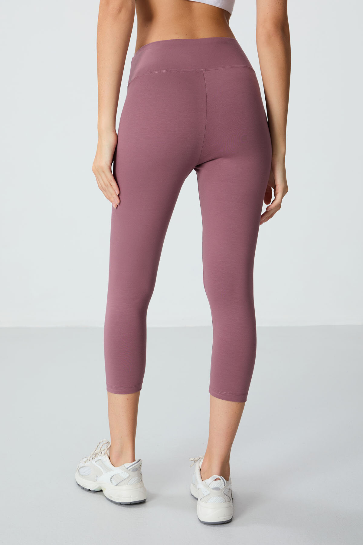 Slim Fit 3'lü Paket İndigo-Gül Kurusu-Kahverengi Kadın Kapri Tayt - 93097