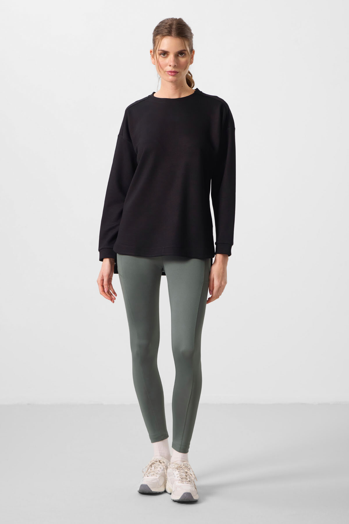 Rahat Form O Yaka 2'li Paket Siyah-Koyu Gri Kadın Tunik Sweatshirt - 97305