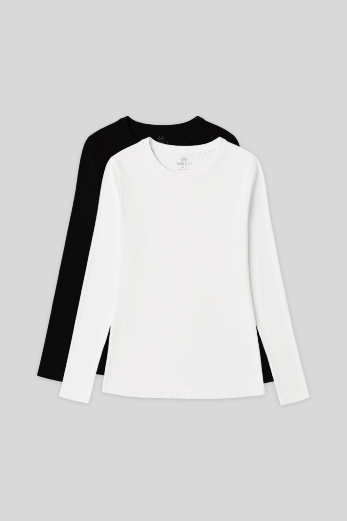 Slim Fit Basic O Yaka 2'li Paket Siyah-Beyaz Kadın T-Shirt - 97312
