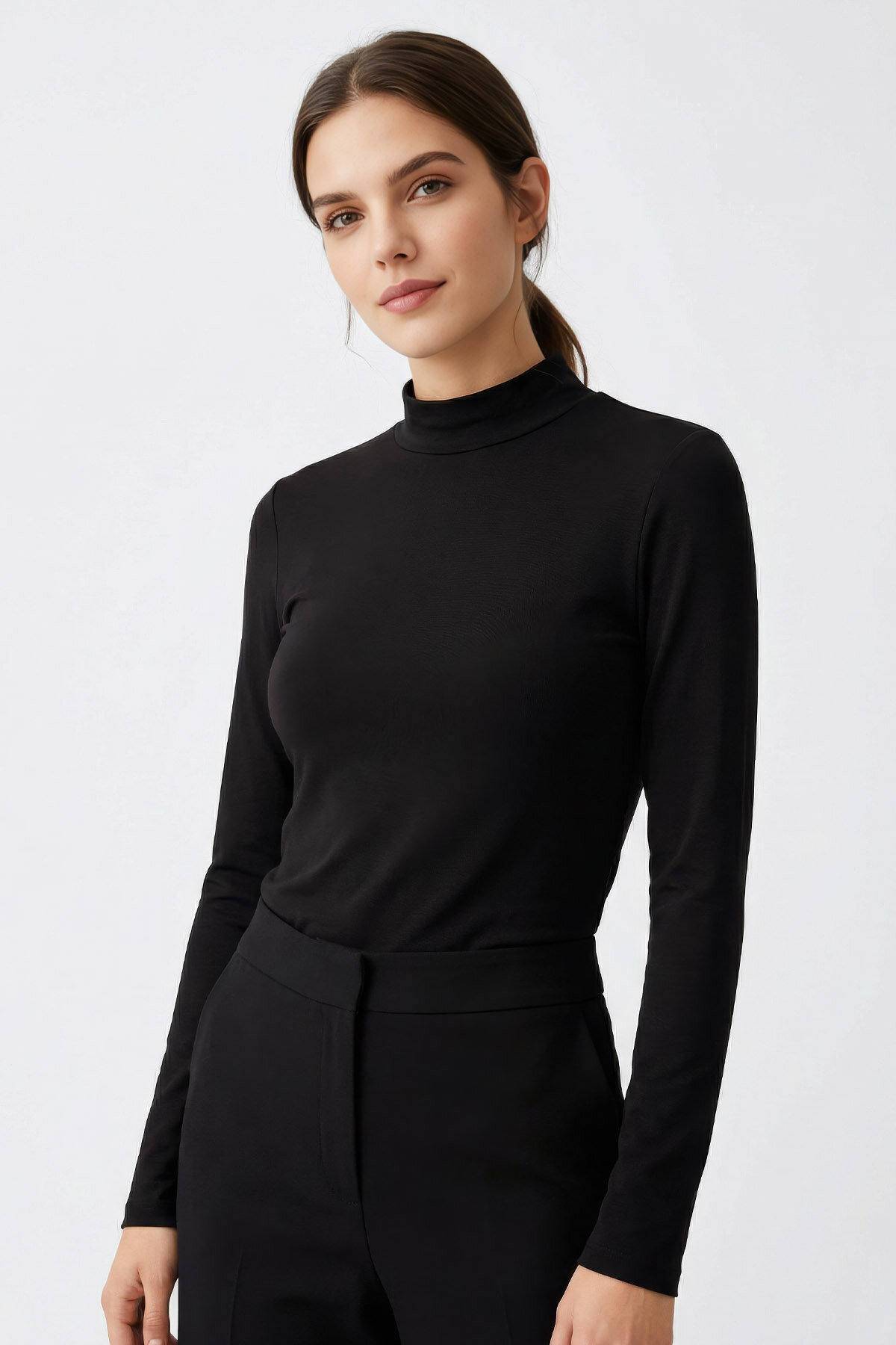 Siyah Balıkçı Yaka Basic Uzun Kollu Kadın Body - 97306