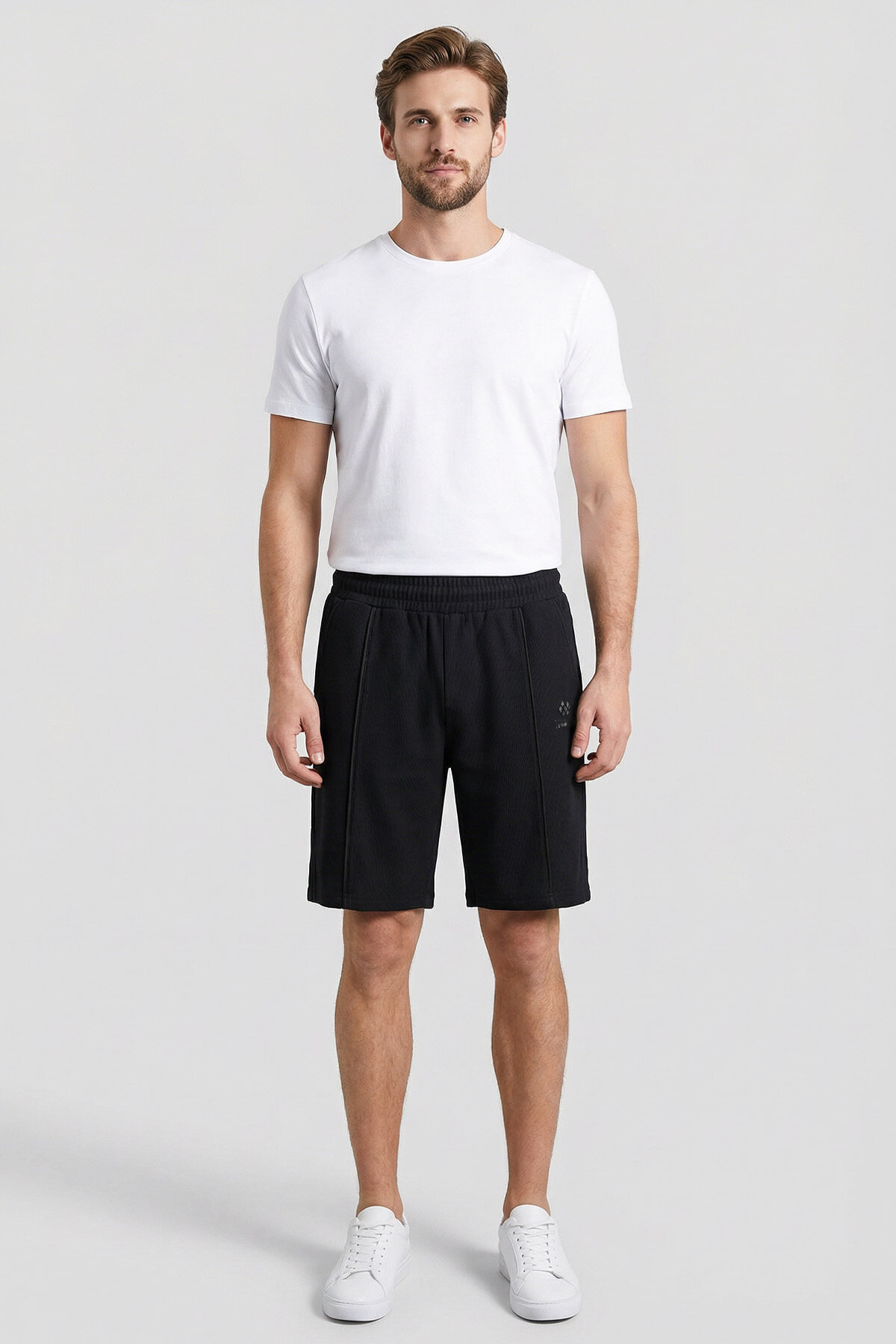 Siyah-Bej Oversize Fit Basic Ön Dikiş Detaylı Erkek Şort - 81283