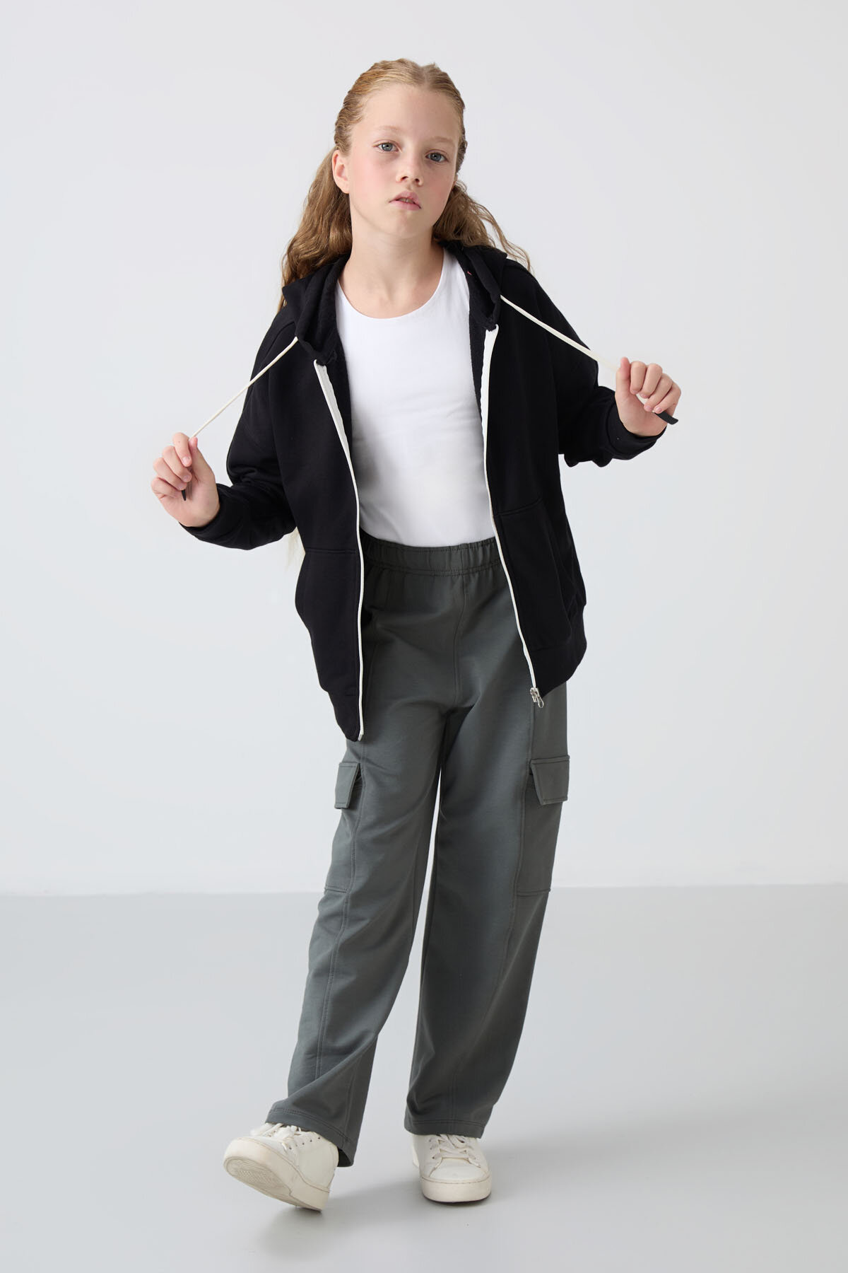 Siyah Pamuklu İçi Tüylü Yumuşak Dokulu Standart Fit Nakışlı Kız Çocuk Sweatshirt - 75149