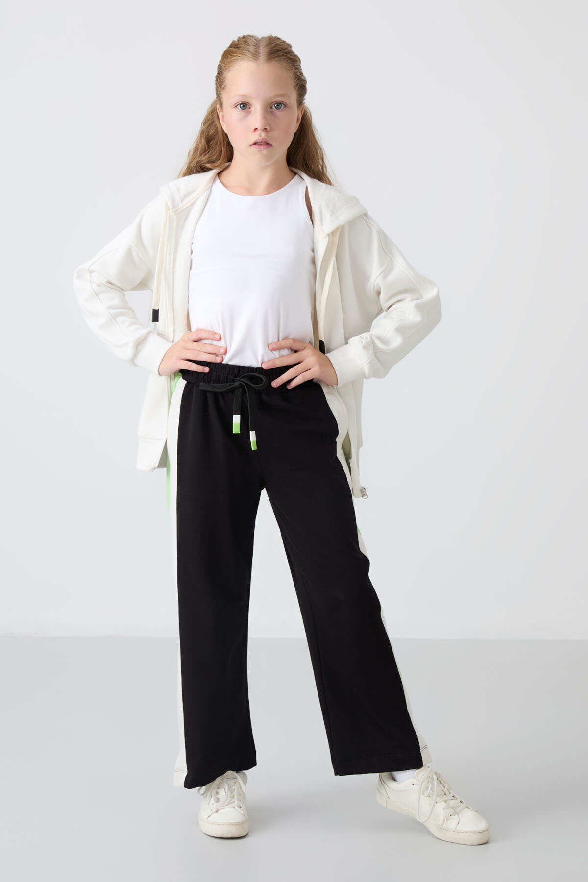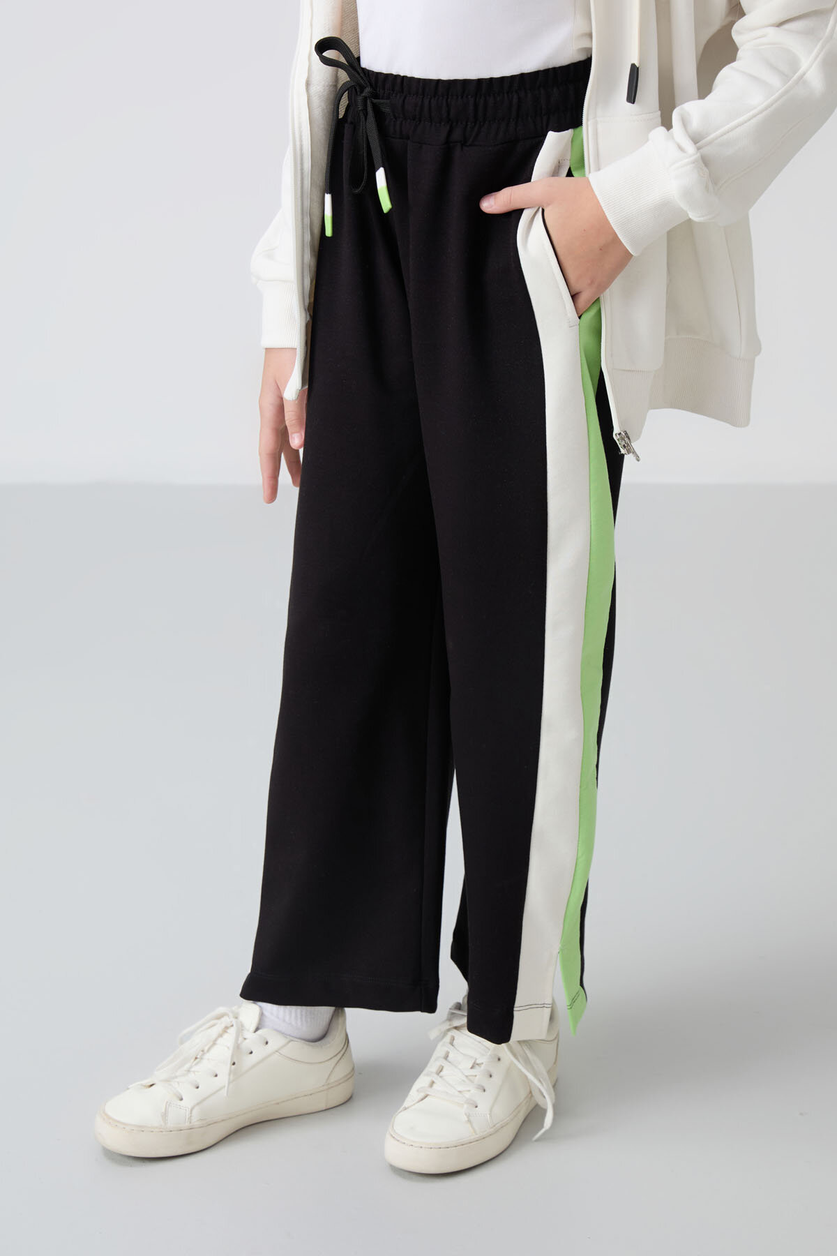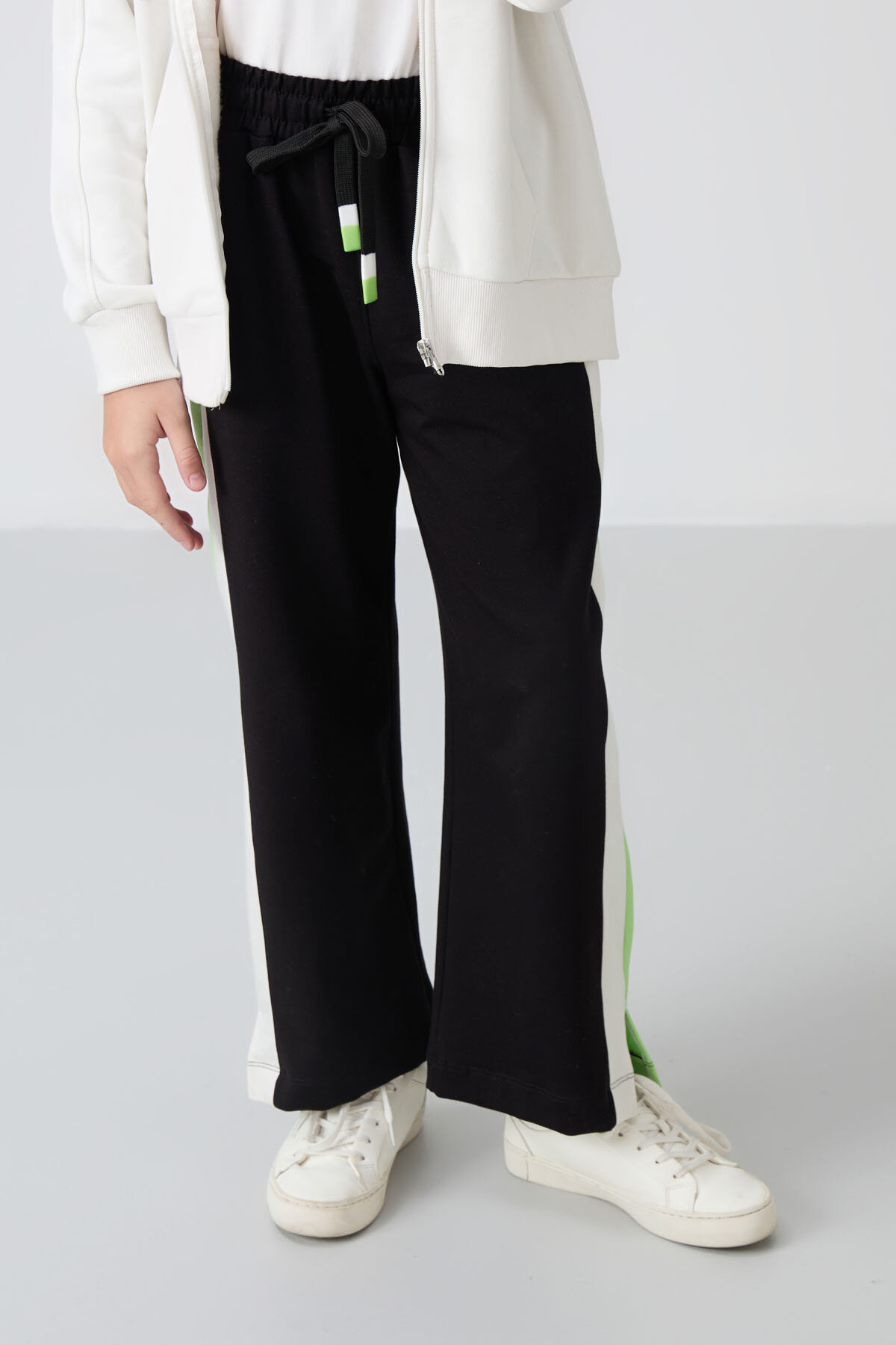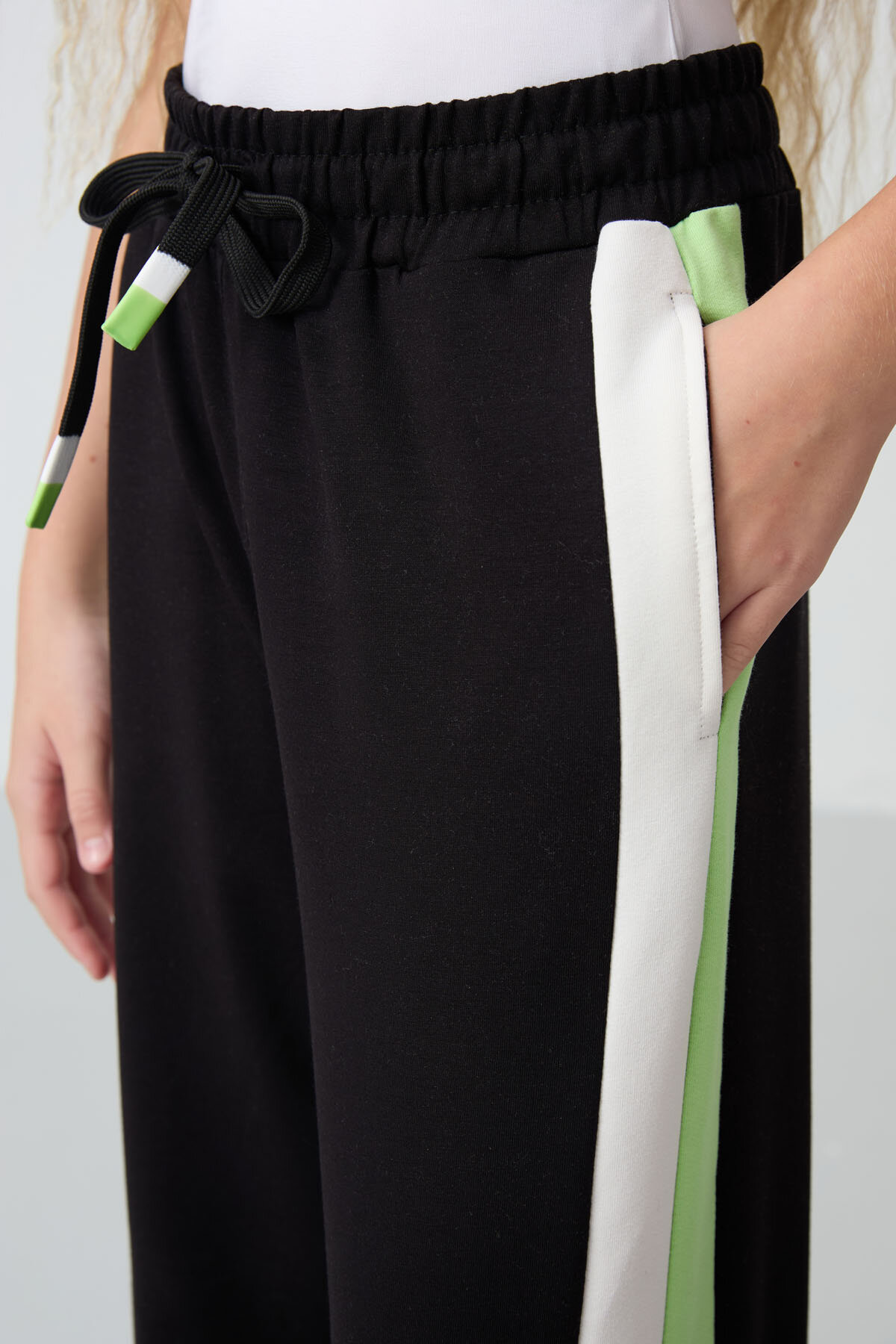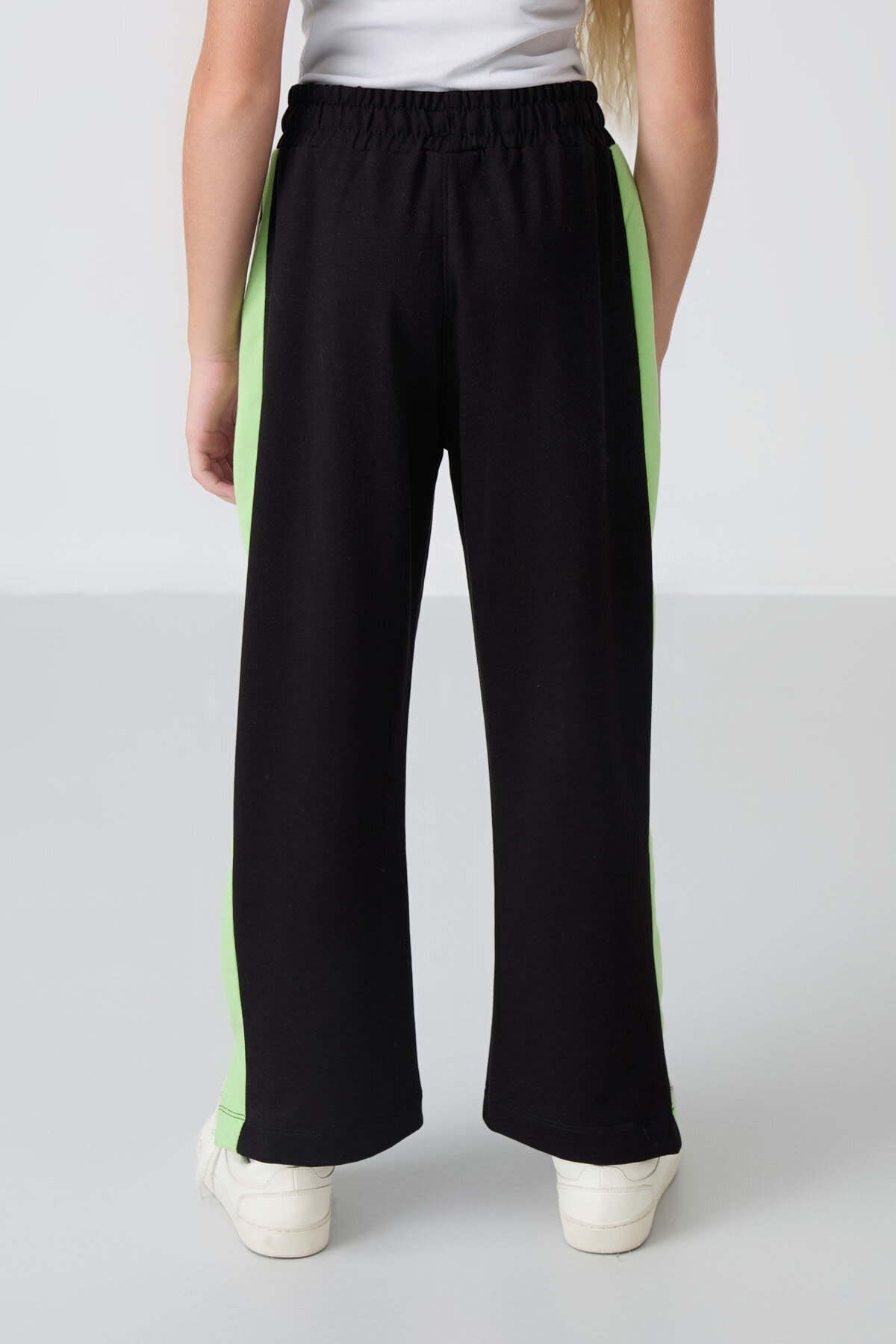 Siyah Yırtmaç Detaylı Cepli Geniş Paça Kız Çocuk Eşofman Alt - 75141