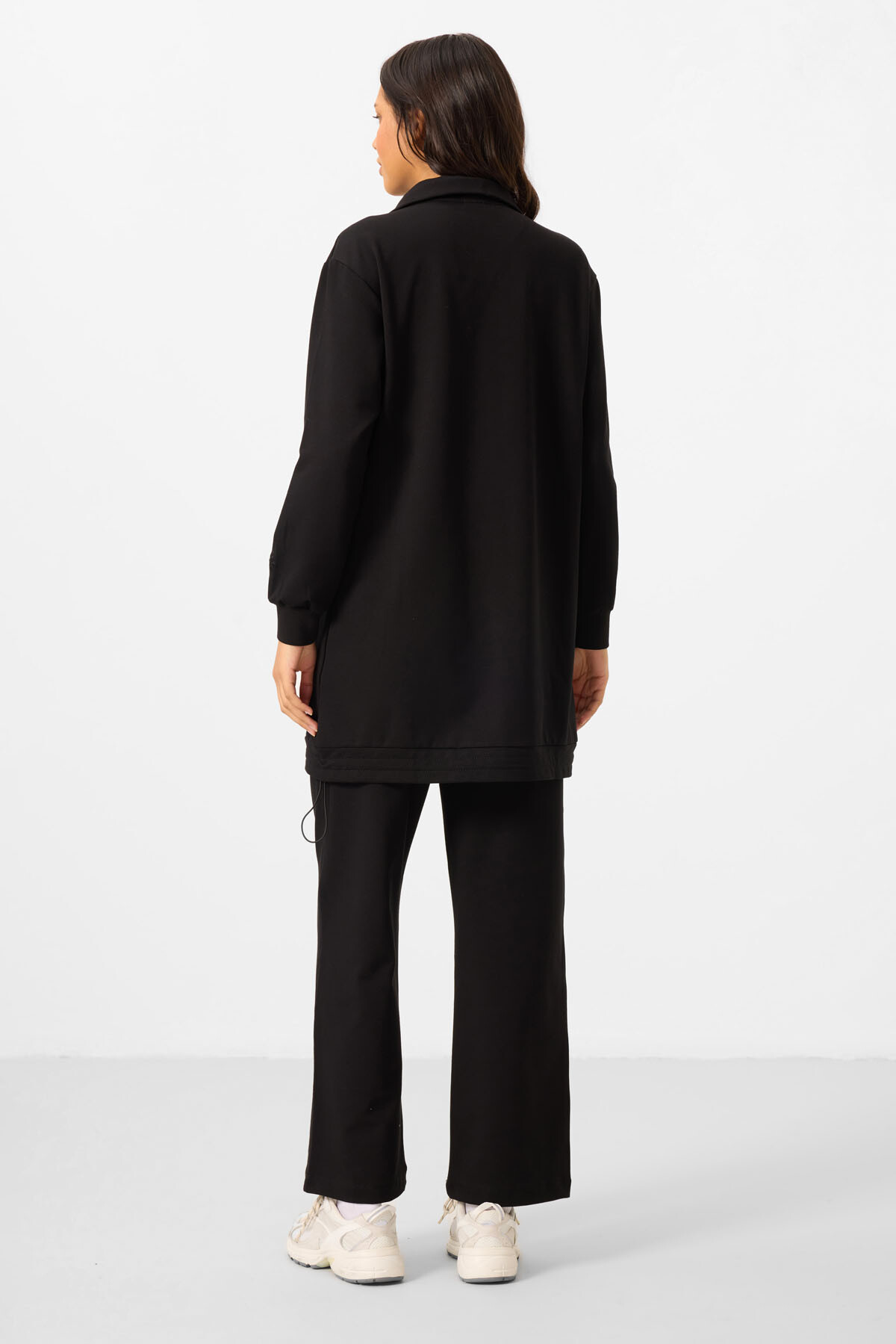Siyahın asaleti bu eşofman takımında buluştu. Her anına uyum sağlayan sade ama güçlü duruşuyla ister şehirde ister evde farkını hissettirir. Minimal çizgisiyle hem modern hem de zamansız bir stil arayanlar için ideal tercih!