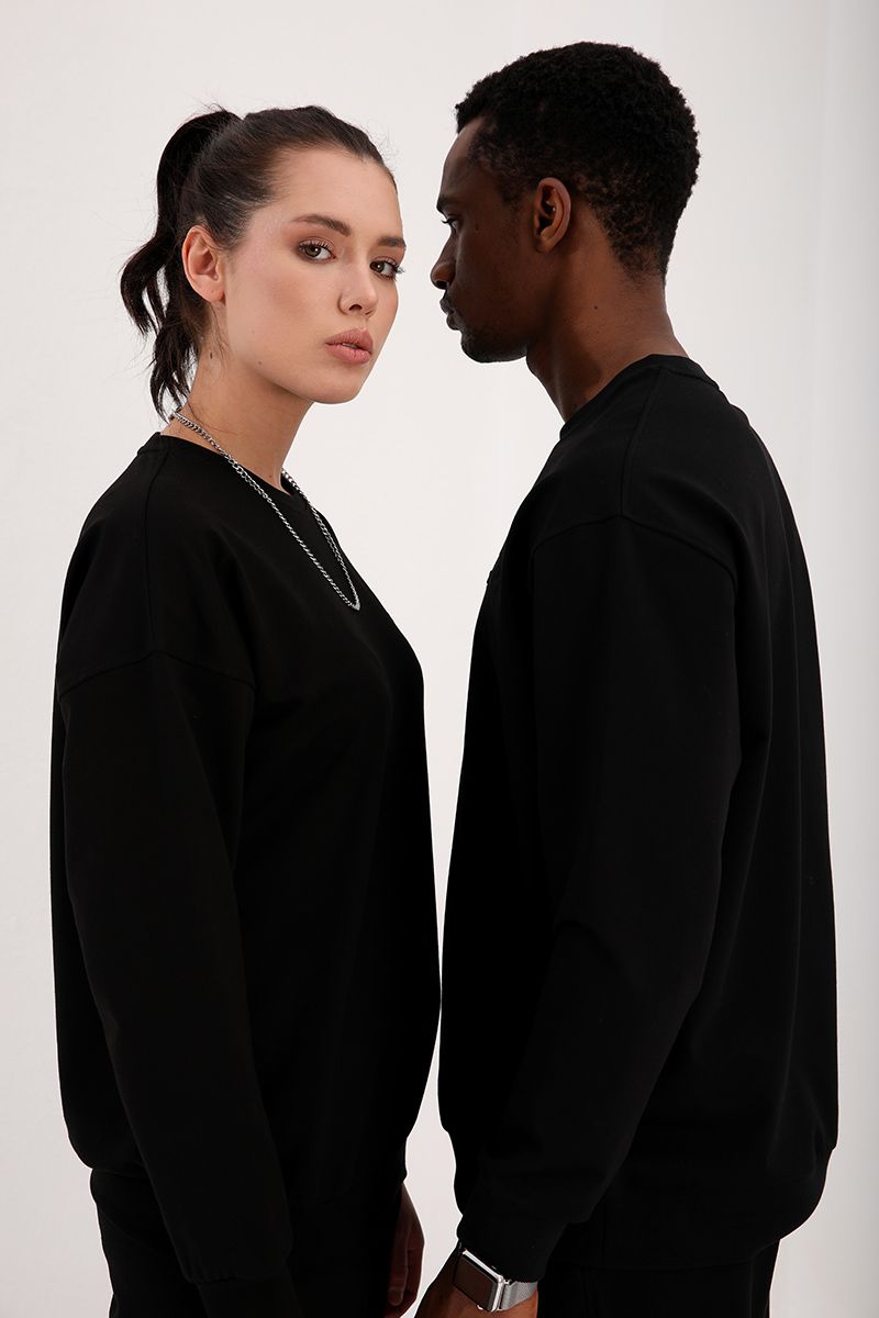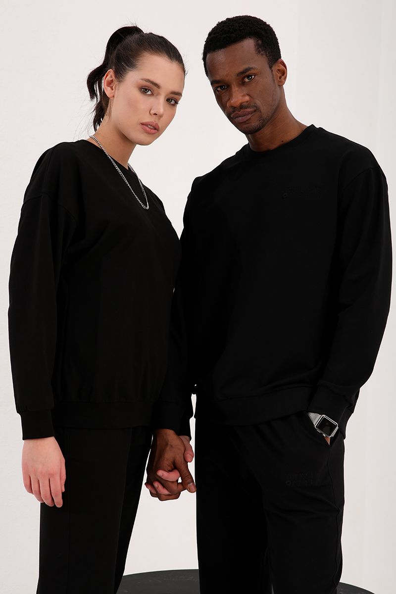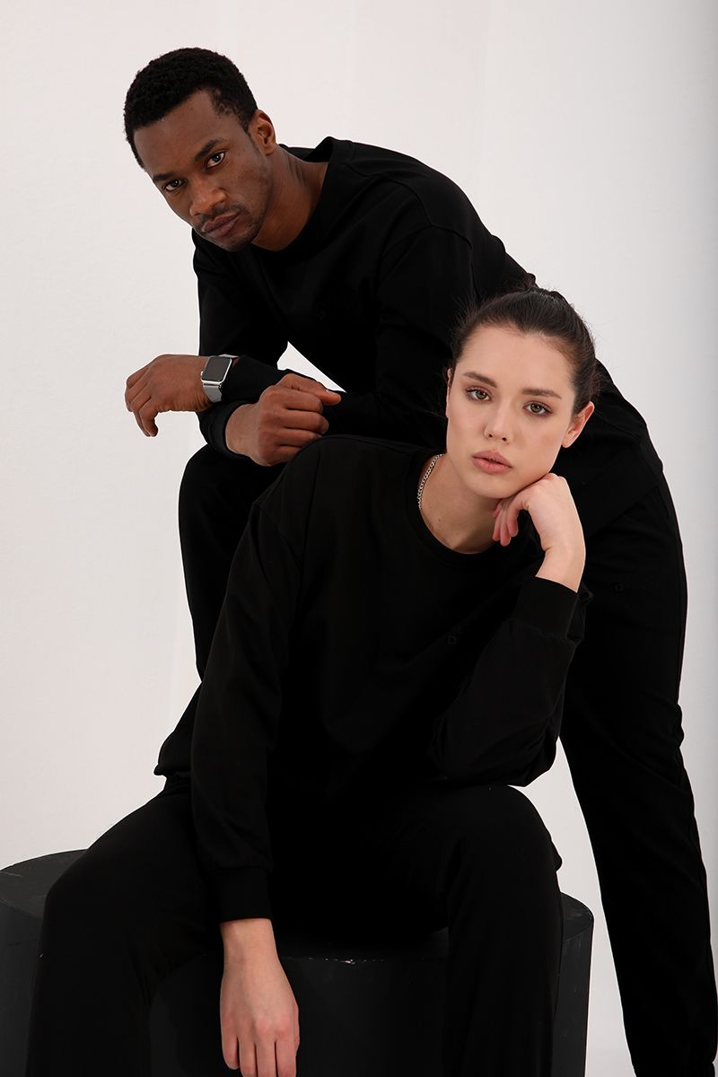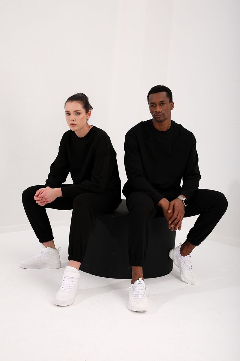Ürün Adı : Siyah Casual O Yaka Oversize Lastik Paça Sevgili Kombini