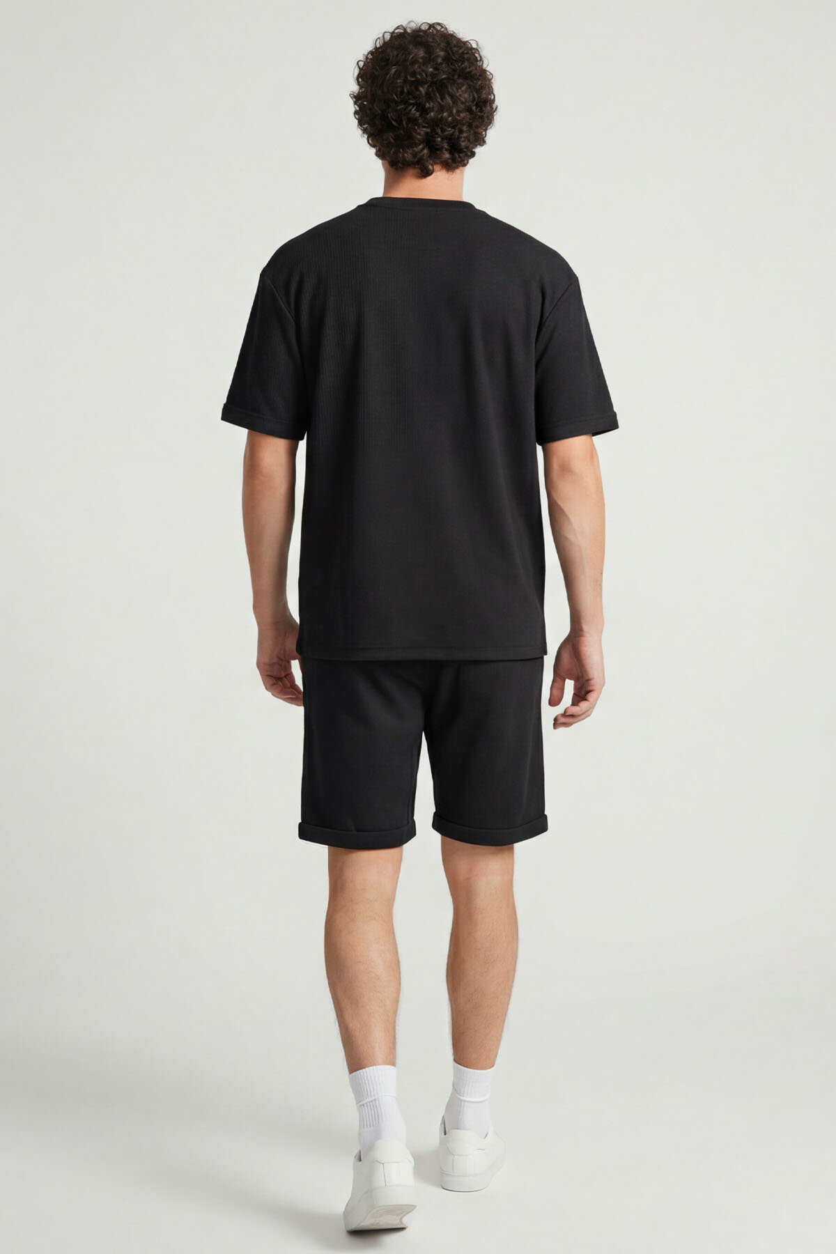 Siyah Oversize Fit Yumuşak Dokulu Basic Erkek Şort Takım - 85274