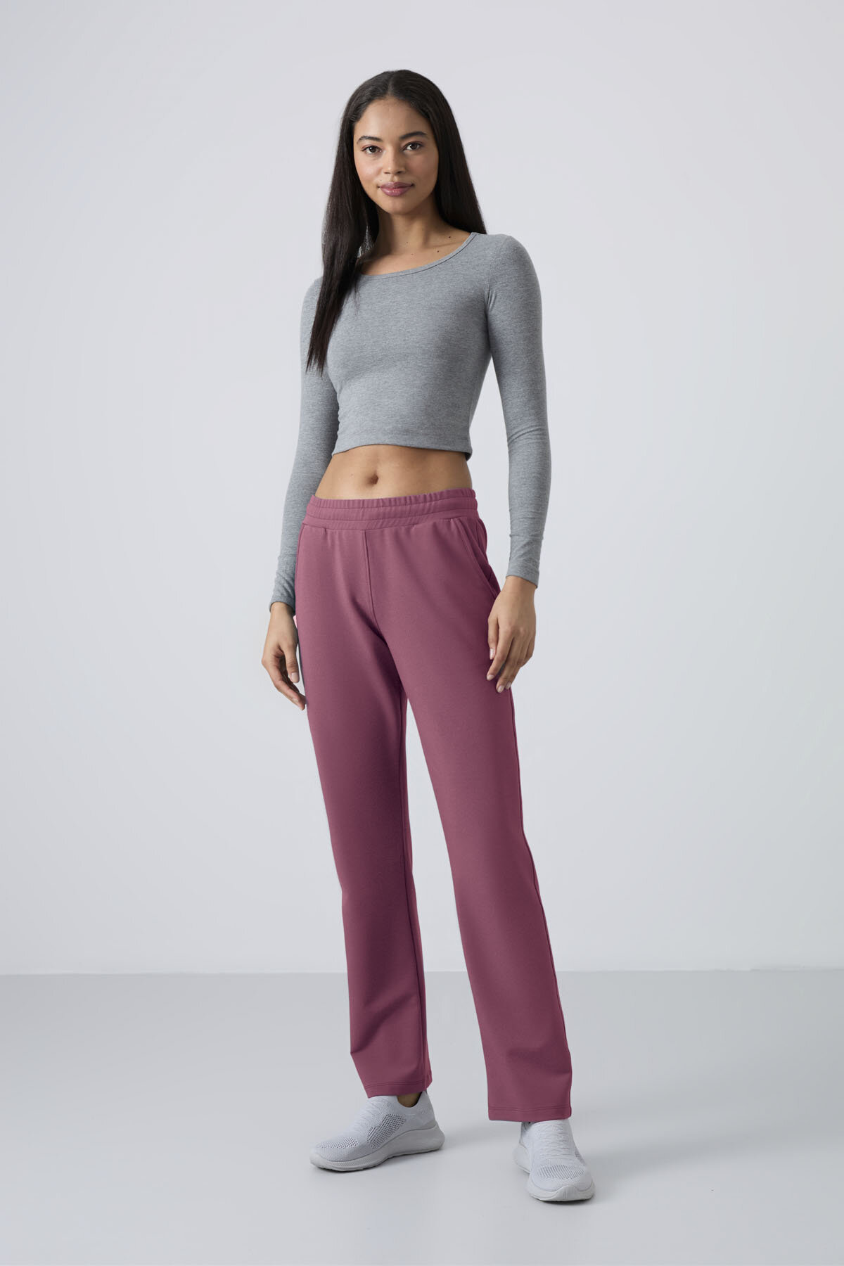 Soft Vişne Yüksek Bel Cepli Rahat Form Klasik Paça Kadın Eşofman Alt - 94584