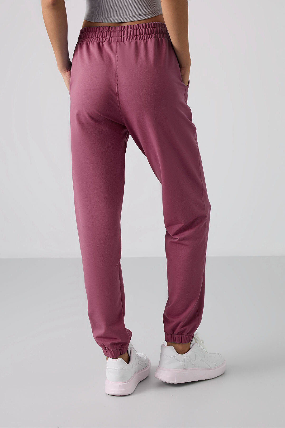 Soft Vişne Cepli Yüksek Bel Rahat Form Lastik Paça Kadın Eşofman Alt - 94583