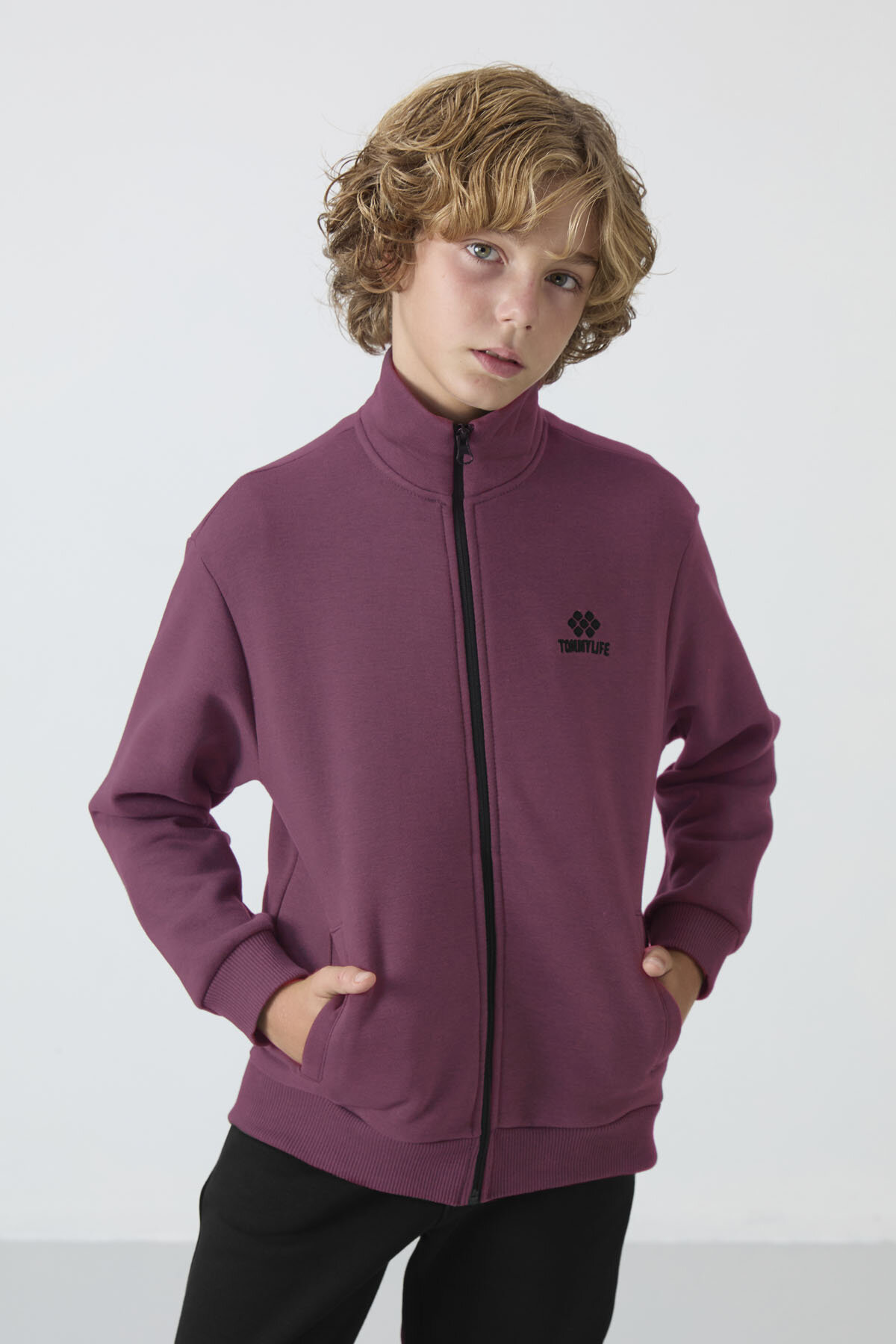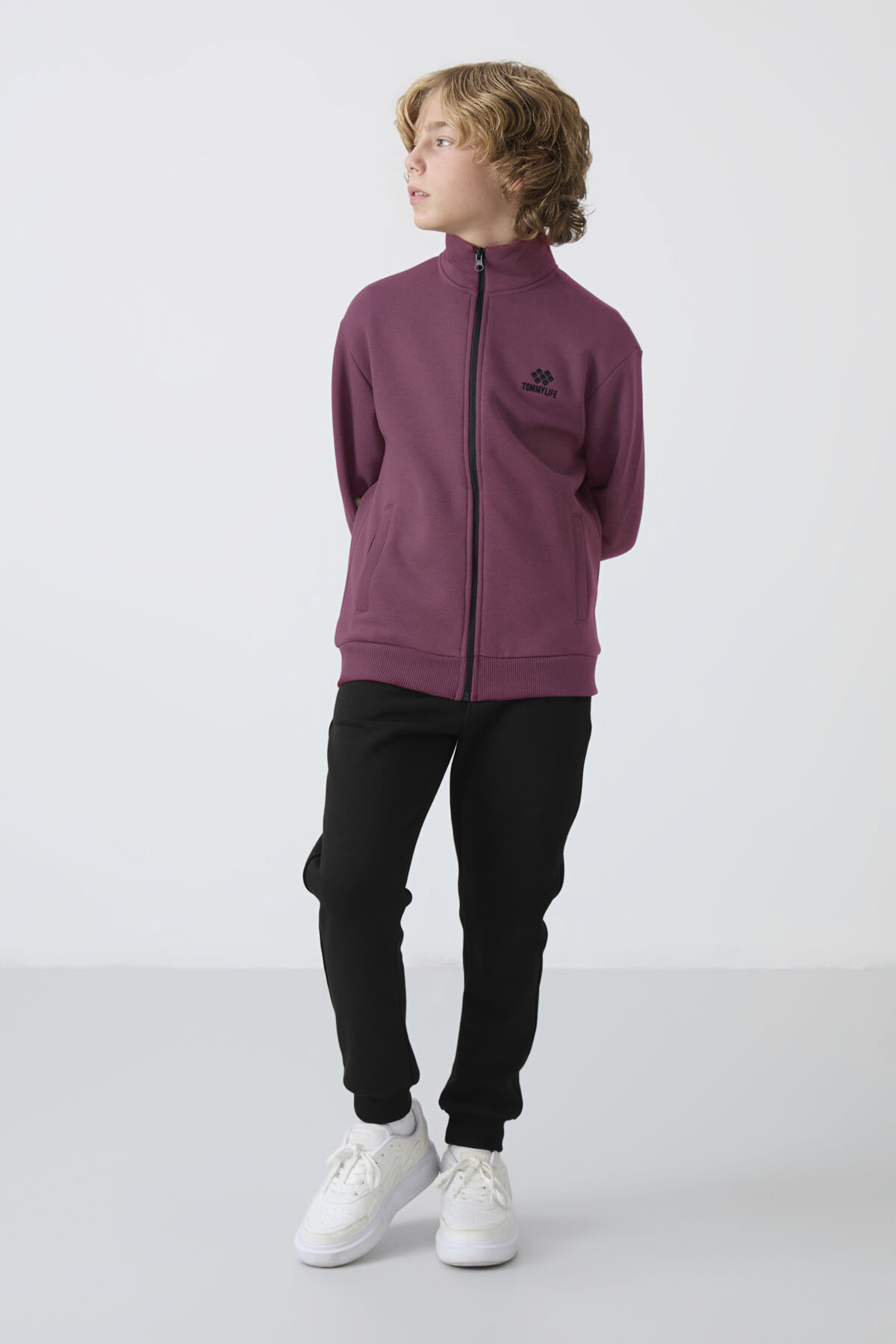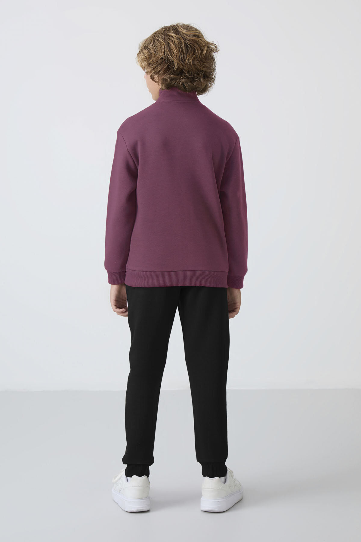 Soft Vişne-Siyah Pamuklu Kalın İçi Tüylü Standart Fit Nakışlı Erkek Çocuk Eşofman Takım - 11256