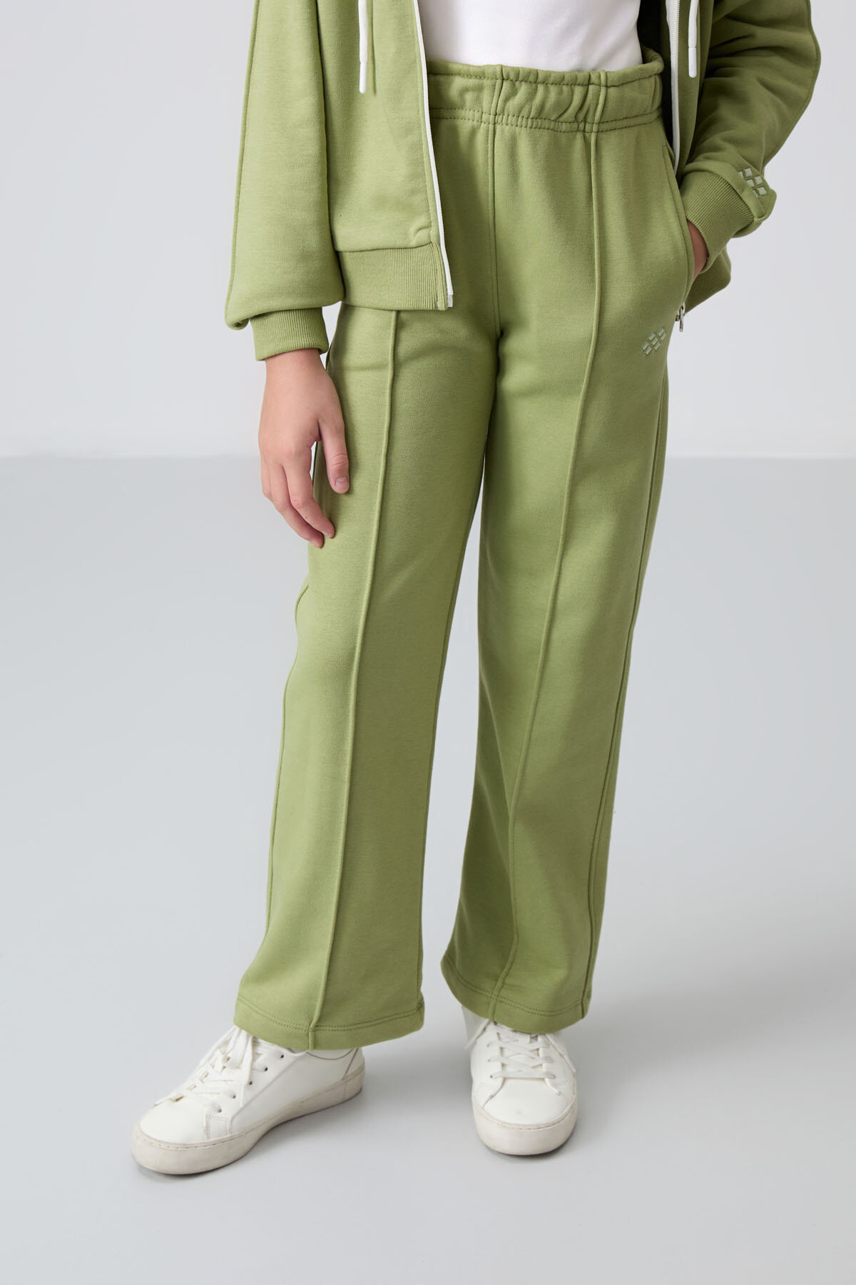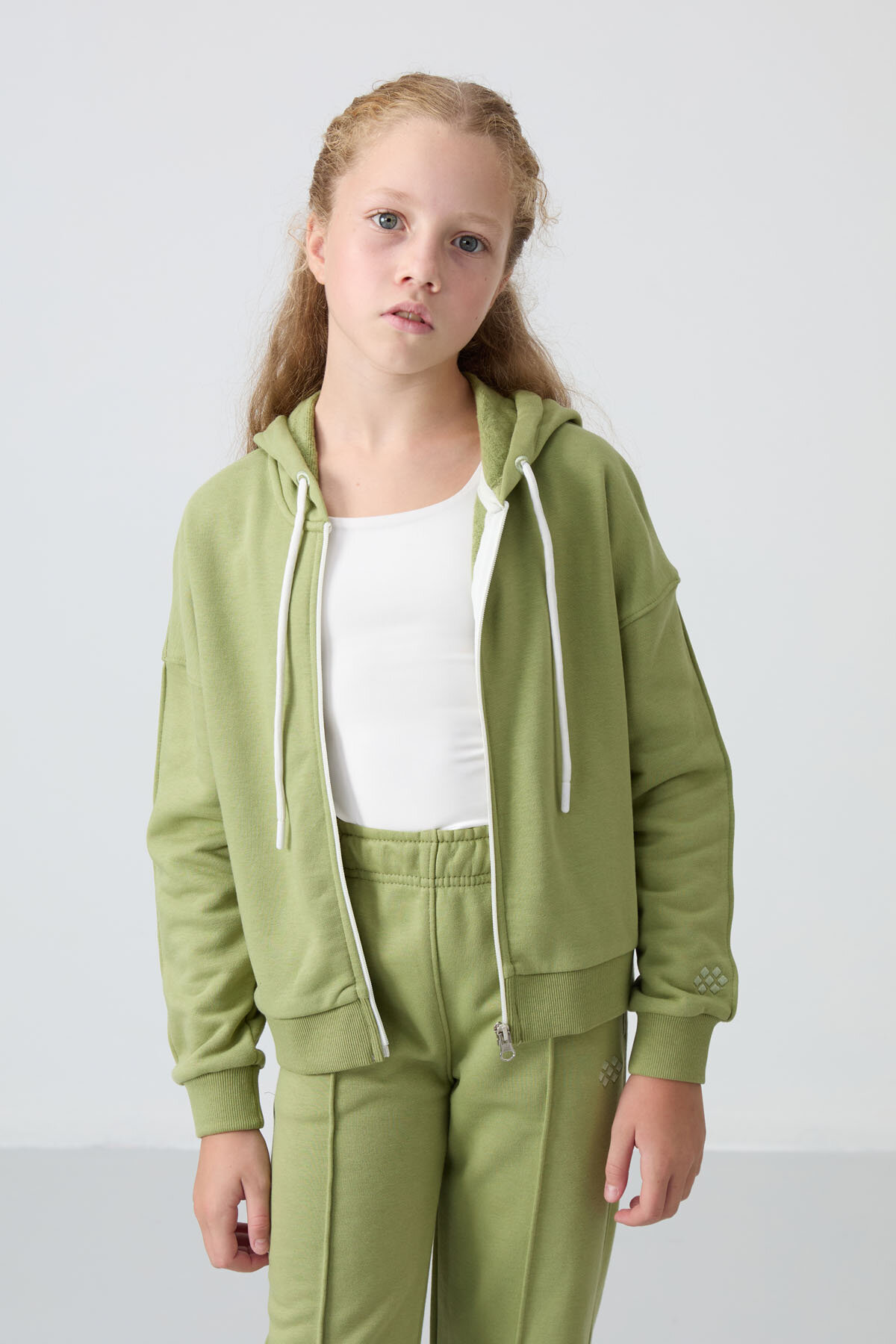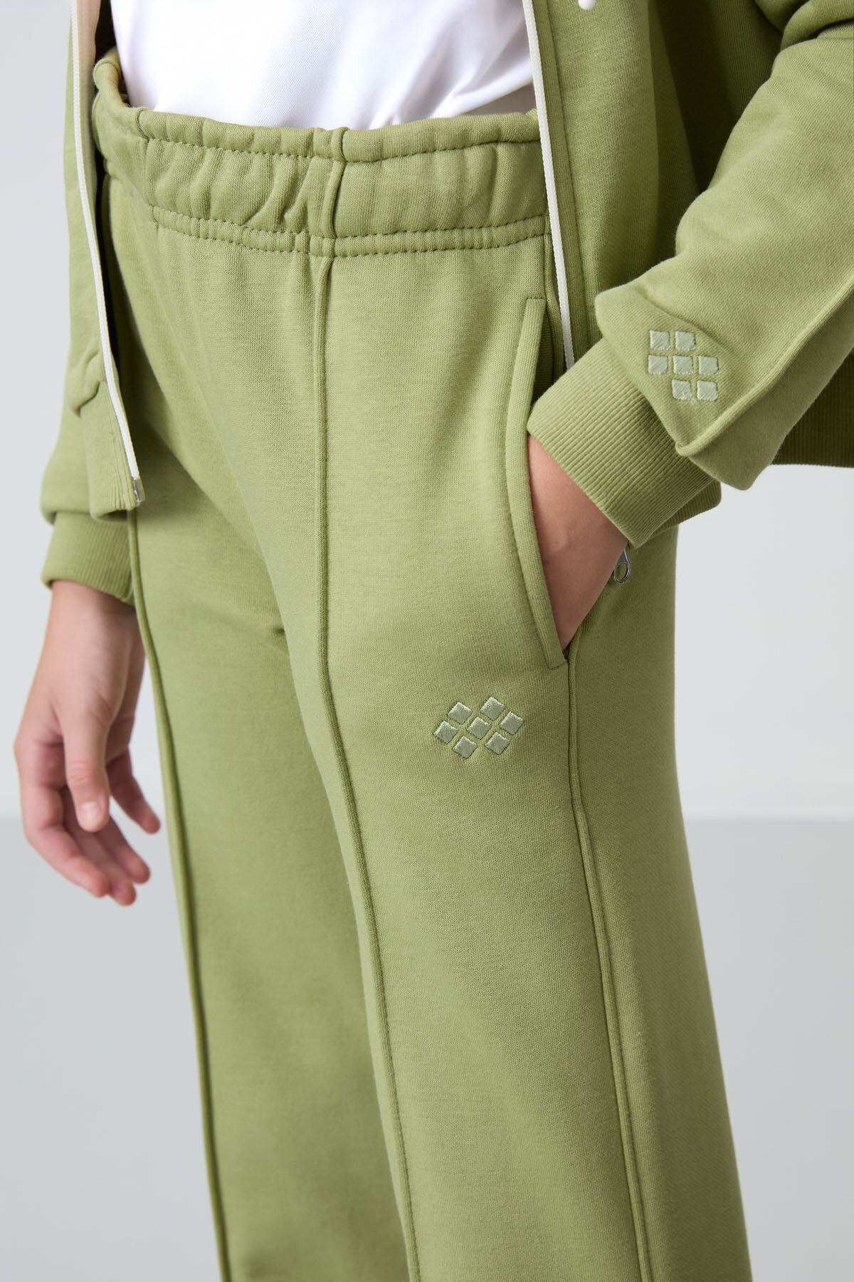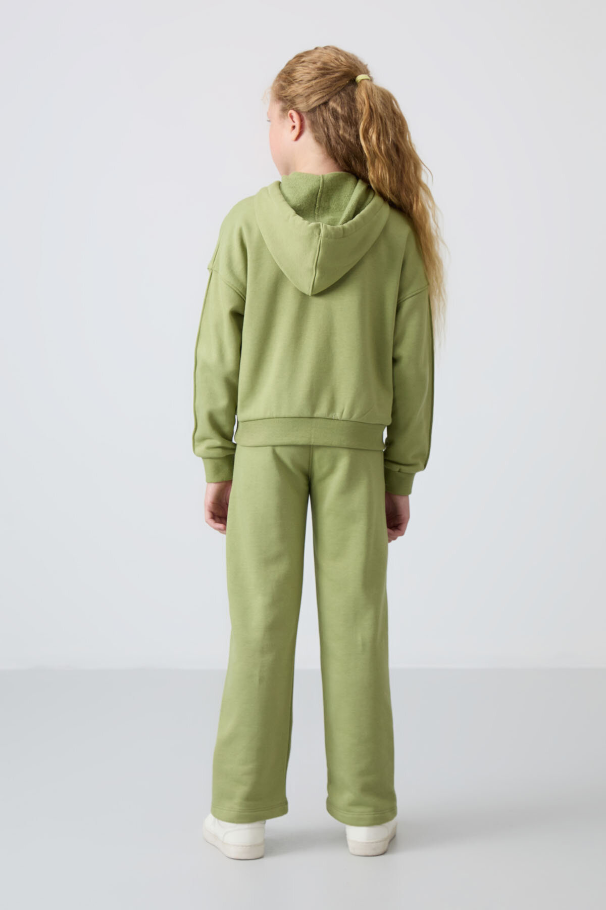 Yağ Yeşil Pamuklu İçi Tüylü Yumuşak Dokulu Standart Fit Nakışlı Kız Çocuk Eşofman Takım - 75161